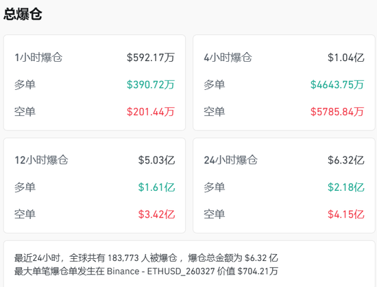 据Coinglass数据显示,过去24小时,加密货币全网爆仓人数超18万。 Q; Z! k# g* X$ \- ~