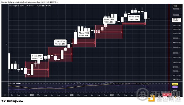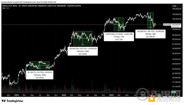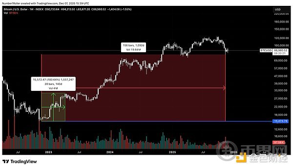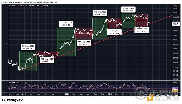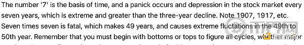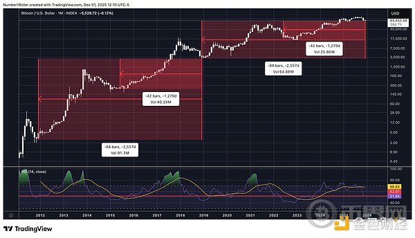 这并非希望或猜测,而是纯粹的市场结构和时间节点完美契合的结果,而这种契合只会在最重要的转折点出现。 市场已经完成了它的使命:淘汰了那些意志不坚定的投资者,彻底扭转了市场情绪,并让90%的参与者相信牛市已经结束。这正是市场在真正行情开始前应该做的。当你读完这篇文章时,你也会和我们一样,将当前的低点视为一个转折点,它将引领比特币的这轮周期进入2026年。 7的循坏周期首先要考虑的是7年周期,它可以细分为7个月、7周或7天的周期。此前分享了关于以太坊周期的类似观点,现在我们将探讨比特币的周期。 下图是Gann周期法则之一,解释了为什么数字7在市场中如此重要。 我们可以查看月线图来了解情况如何。 如下所示,84个月相当于7年,而每隔84个月我们都会经历一次重要的低点。以42个月为周期中点,也呈现出一个从低到低的周期性波动。 当我们放大观察这个周期时,我们还可以测量从月度低点到月度低点的时间间隔范围,我们发现每个月度低点都恰好出现在距离上一个主要低点7个月的时候。 最后,从周线周期来看,市场确实下跌了 7 周(45 天),Gann理论认为,在这个时间段内,日线和周线的调整会在这一时期达到顶点,因此需要密切关注。 综上所述,我们可以看到从月度到日度的7周期汇聚在一起,这表明这是该市场的一个重要转折点。 市场结构与价格水平很多人谈论市场结构、更高的高点和更低的低点,但真正理解的人却寥寥无几。这与那些只懂四年周期的人一样,他们只知道这些,却并不真正理解周期以及其含义。 那些认为这种市场结构已转为熊市的人,实际上并不了解什么是市场结构,也不知道如何判断市场结构。 Gann理论始终强调,趋势变化的最重要指标是时间。 在牛市中,价格上涨的时间会比下跌的时间长。不仅如此,市场下跌的时间也不会超过前一次下跌的时间。这就是我们所说的平衡期。 当市场下跌的持续时间不断缩短时,市场就发出强势信号。 看看本轮周期中回调的持续时间,它们一直在不断缩短,这表明趋势并未发出变化信号,市场实际上正在展现出强劲势头。 接下来我们可以谈谈价格调整。以下是Gann所著《华尔街45年》中的一段节选。 人们在最近的这次回调中忽略的恰恰是上述情况。回顾之前的比特币周期,你会发现随着周期的推进,回调的价格波动越来越剧烈,但持续时间却越来越短。这表明市场强劲,并且随着接近峰值,波动性也越来越大。 下图显示,这正是该结构中正在发生的情况,回调越来越剧烈,但持续时间越来越短。 价格水平从周期低点开始衡量价格回调,有一个关键支撑位在整个周期中一直保持不变,并且在每次低点时都发挥着重要作用。 该水平是0.375 Gann水平位。Gann将价格波动分成八等份,而不是使用典型的斐波那契水平位。 在这种情况下,我们可以看到,从 2023 年至今,这一水平标志着每一个主要高点的底部。 2023年高点 2024年高点 2025年1月高点 2025年10月高点 每次价格从重要高点触及该水平时,最终都触底反弹。这一次,该水平出现在84,420,价格在周线图上企稳并收于其水平之上。 季节性模式接下来我们需要考虑一些季节性因素。 第一个是去年12月17日出现的高点。这是一个360度的日期,也是一个周年纪念日,今年12月12日又会再次出现。 这也向我们展示了从四月低点开始以225度角出现的低点,并且根据Gann理论,这标志着季节性转折点的到来。 如果像Gann那样将一年分成八等份,一年就会分成八个45度的区间。 因此,我们不仅有225天的时间来观察趋势变化,而且这个日期距离10月份的最高点还有45天。 最后,我想再审视一下我所认为的15年周期,因为它在2026年将具有重大意义。 在那一轮周期中,我们在15年前的12月6日那一周触及了低点。 最近,我们看到这一主要周期出现了逆转,但如果我们想要重回正轨,在这个时间段内出现低点是合理的。 去年 12 月初我们共同迎来了一个重要的周年纪念日,与每年的季节性模式相吻合,这表明可能即将出现反转,与 180 个月的周期相符。 时间和价格的平方关系测量时间范围、度数和季节性时间,可以让你掌握90%的正确方法,从而确定主要转折点,但当时间和价格与所有这些因素相吻合时,这种分析才算真正站得住脚。 我们知道,价格和时间在下跌过程中达到了平衡,46天内下跌了46000,因此我们在日线图1/1角度上有一个强烈的反转点。 我们可以通过回顾2024年8月的低点来进一步强化这种平方关系。该低点出现在49577 点。如果从该低点向前推算495天,会得到12月13日,这距离去年的顶部和季节性时间仅有一天之差。*请注意,这个平方的中点恰好出现在4月的底部。 接下来,如果我们从周期低点15480看一些更高时间框架的平方数,向前推1548天,上涨154800点,得到下图所示的线,该线从周期低点开始对时间和价格进行平方。 此外,我希望你们注意一下周期低点的重要性。 注意价格15,480是如何从底部15,500点开始向上移动的第一个区间的。 你会不断注意到价格与时间之间的相互影响。因此,展望未来155天、155周和1550天都至关重要。值得注意的是,最近的低点出现在156周,也就是三年周期倒数第二周,而这一天恰好也是11月22日周期低点的周年纪念日。 结论这不是理论,也不是一厢情愿的想法。 我刚才阐述的正是Gann时间周期、价格平方、周年纪念日、季节性转折点和不可打破的市